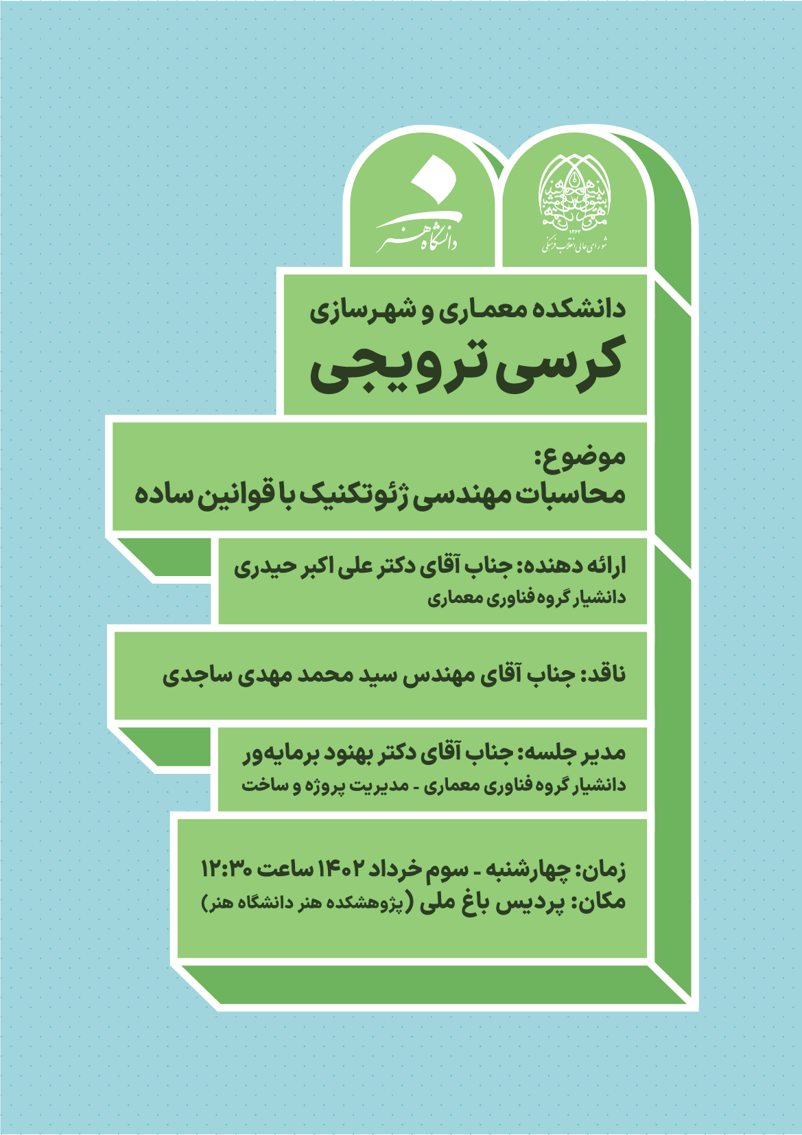 برگزاری کرسی ترویجی با موضوع: محاسبات مهندسی ژئوتکنیک با قوانین ساده ۰۲ خرداد ۱۴۰۲ | ۱۴:۰۶ کد : ۵۴۶۰ اخبار پژوهشی و فناوری ارسال به دیگران نام شما ایمیل شما ایمیل دریافتکننده ارسال انصراف تعداد بازدید:۲۱۲