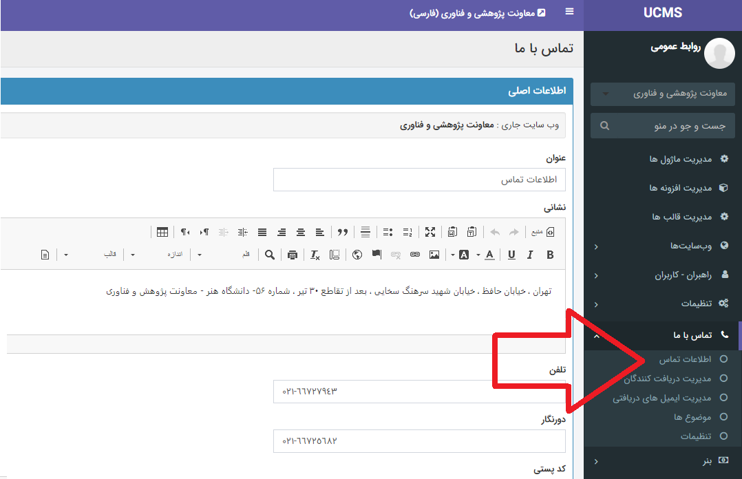 2. ویرایش اطلاعات تماس: